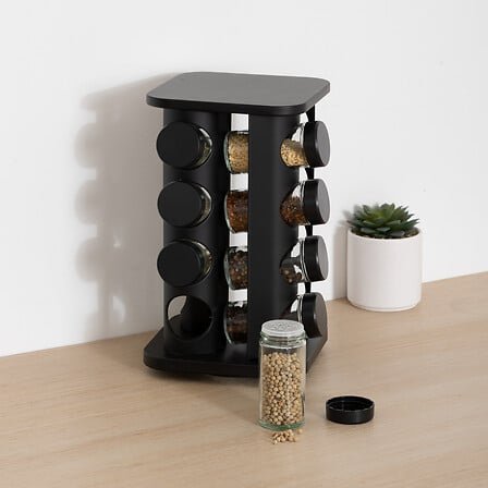 DRAAISCHIJF MET 12 SPECERIJPOTTEN D. 19 X H. 27,8 CM ZWART