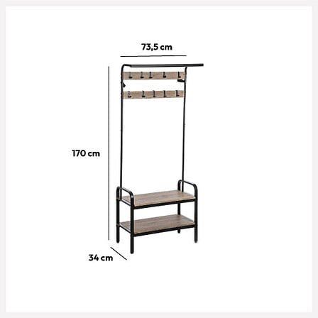 STAANDE KAPSTOK VAN METAAL EN ZWART MDF - 9 ARMEN