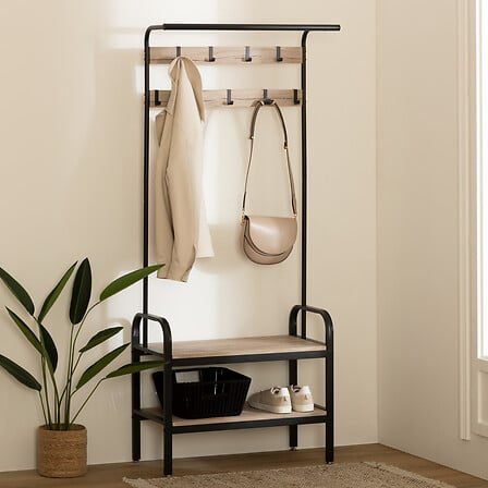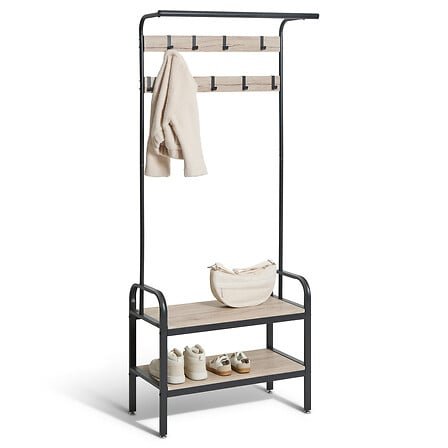 - Barre de suspension 10 patères Charge = 50kg au total Capacité range chaussure : 6 paires