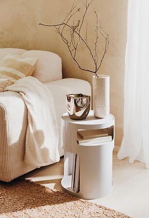 - Plateau : Forme ronde / Structure : en acier, meilleure résistance aux à l'eau et aux tâches, pour un entretien facile / Niche sous plateau / Finition de la structure métal : mat / Finition : glossy / 2 compartiments / Design by Atmosphera
