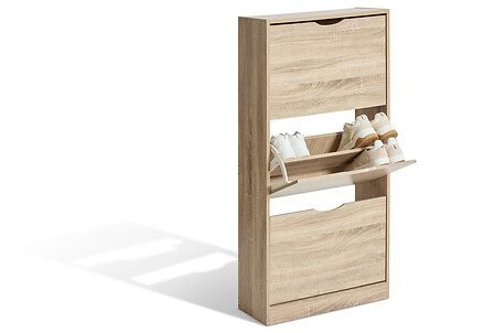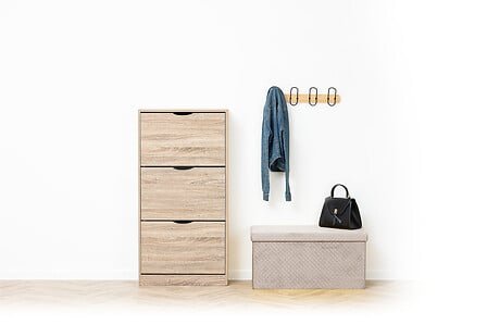 SCHOENENKAST ZWART EN NATUREL- 3 LADES