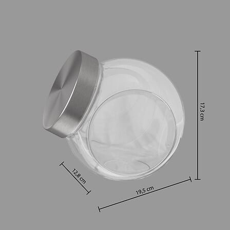 Nixo tilting glass and stainless steel candy jar 2.1 l