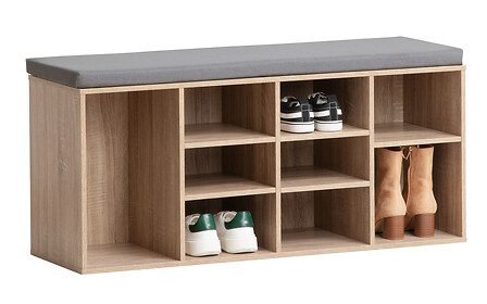 - Banc range chaussures avec 8 étagères amovibles et ajustables suivant la hauteur des chaussures Convient même aux paires de chaussures taille 45 Banc avec assise coussin déhoussable et lavable à 40°C