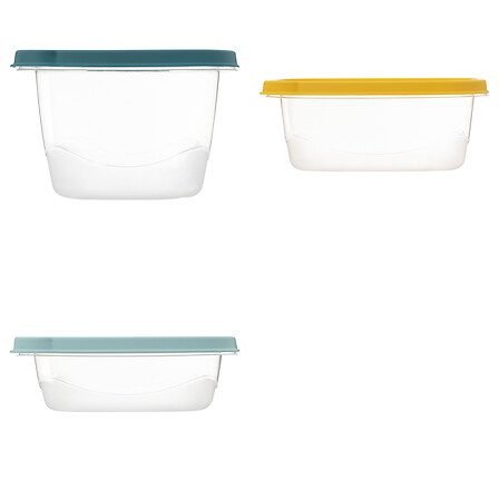 - Detail afmetingen: Modèle carré bas – lot x3 : 17x17x8cm – poids 153gr / 1pcs 17x17x5.5cm – poids 52gr – contenance 0.8L Modèle rectangle – lot x3 : 19×13.5×10.5cm / 1pcs 19×13.5×7.5cm -poids 167gr / 1pcs poids 55gr – contenance 1L Modèle carré haut – lot x3 : 15.5×15.5×13