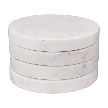 SET VAN 4 ONDERZETTERS DIAM 10 CM WIT MARMER