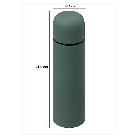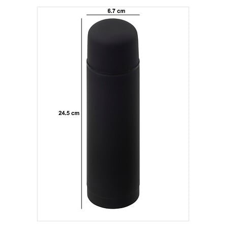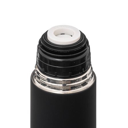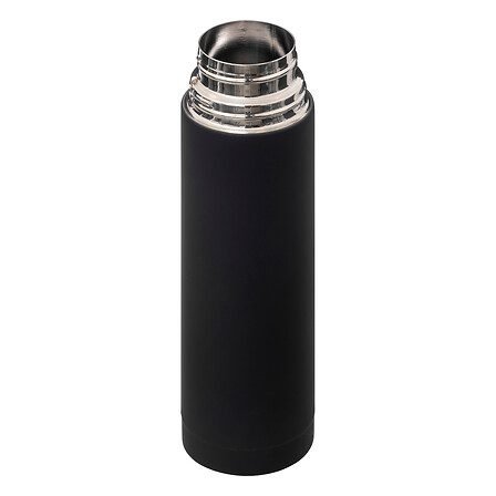 - Bouteille isotherme en inox 0,5L en revêtement TPE, avec couvercle-tasse intégré. Fermeture et ouverture avec bouton-poussoir. Chaud 6h – froid 10h.
