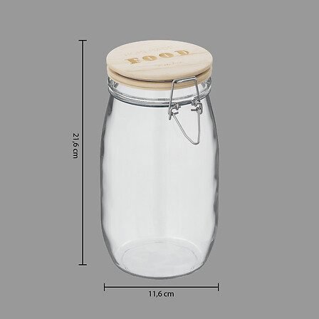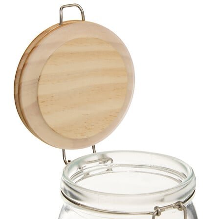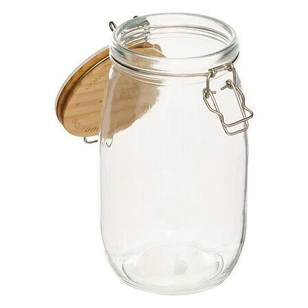 BOCAL WORDING GLAZEN POT MET HOUTEN DEKSEL MET OPSCHRIFT 2 L